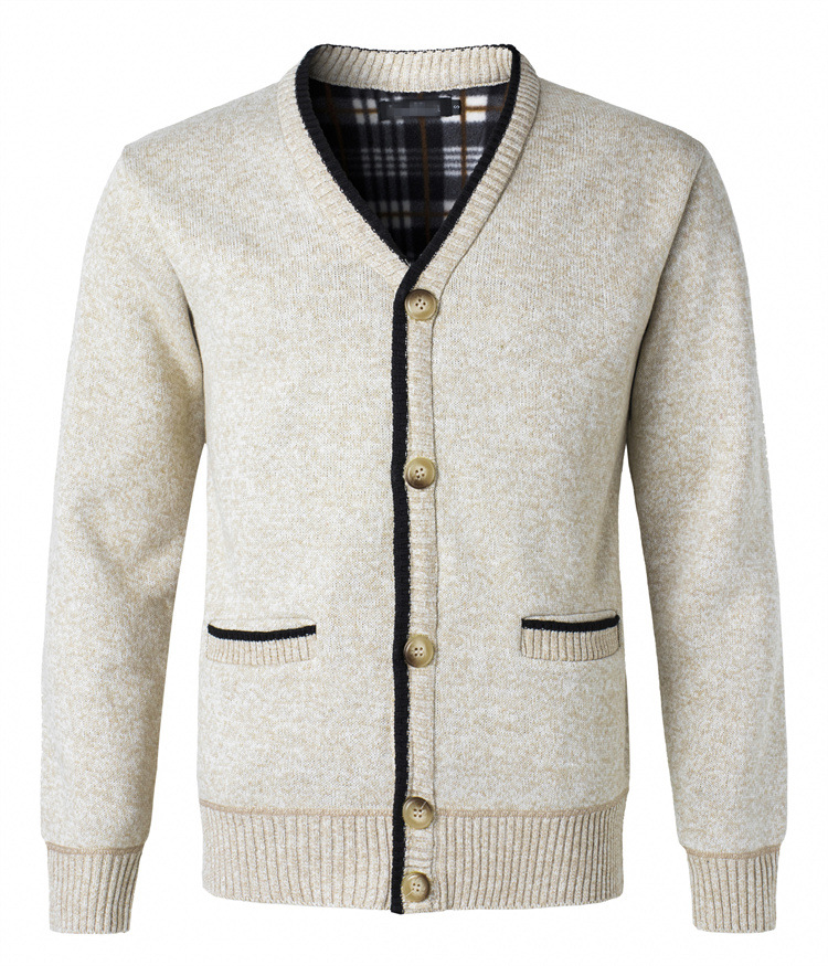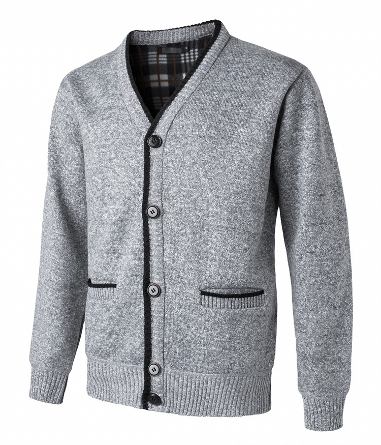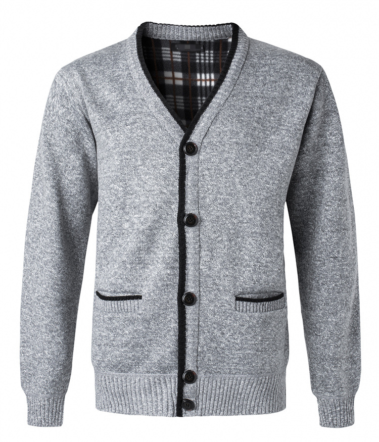 Autumn And Winter Fleece-lined Thickened V-neck Cardigan Cotton Knitwear Dad Coat