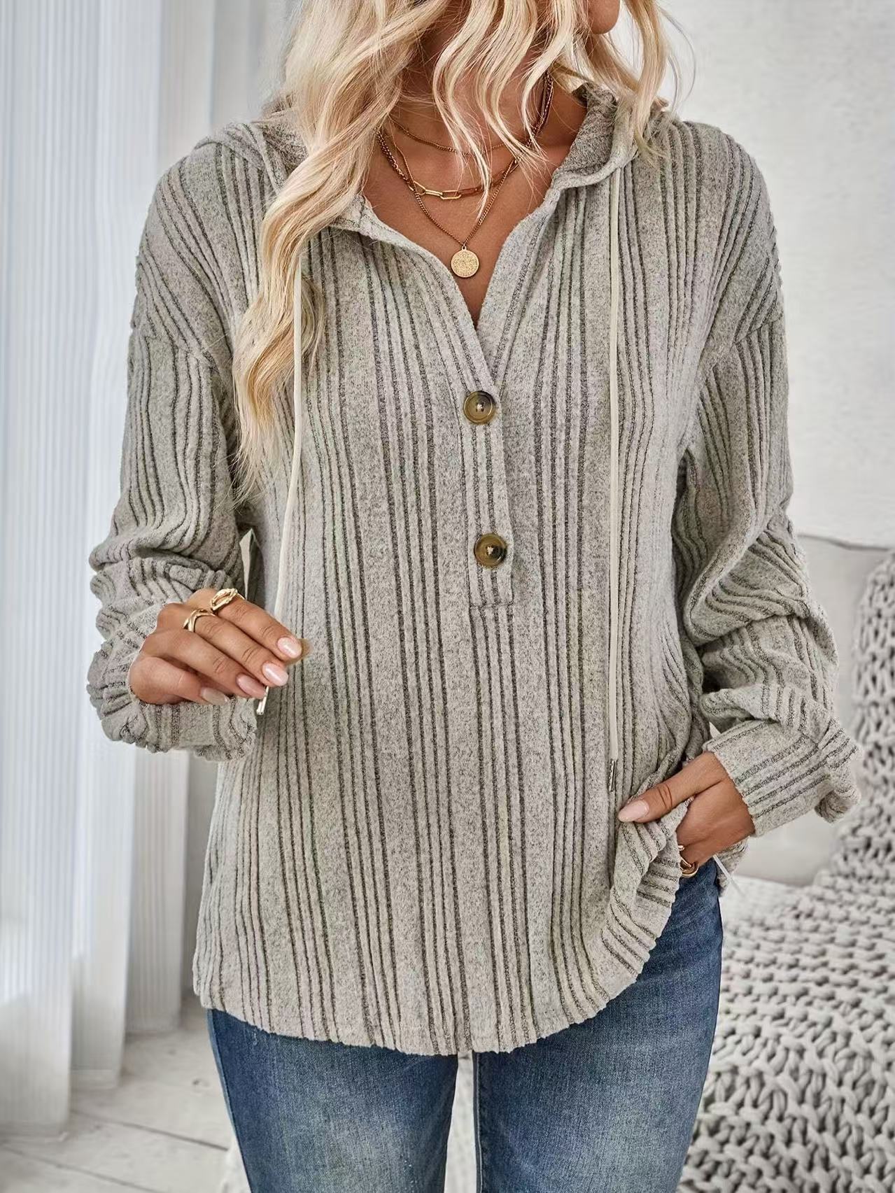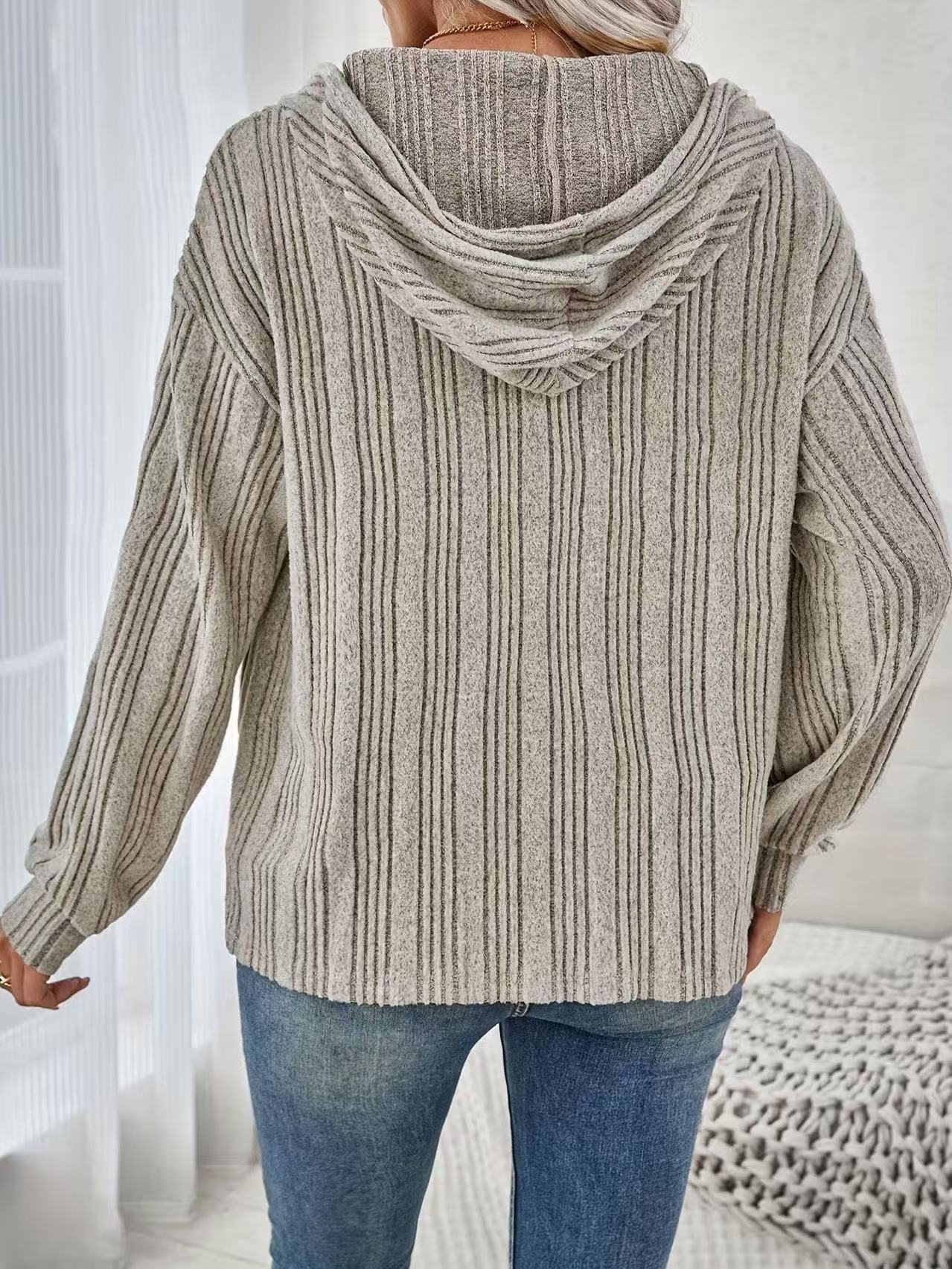 Casual Solid Color Hooded Long Sleeve Sweater Women