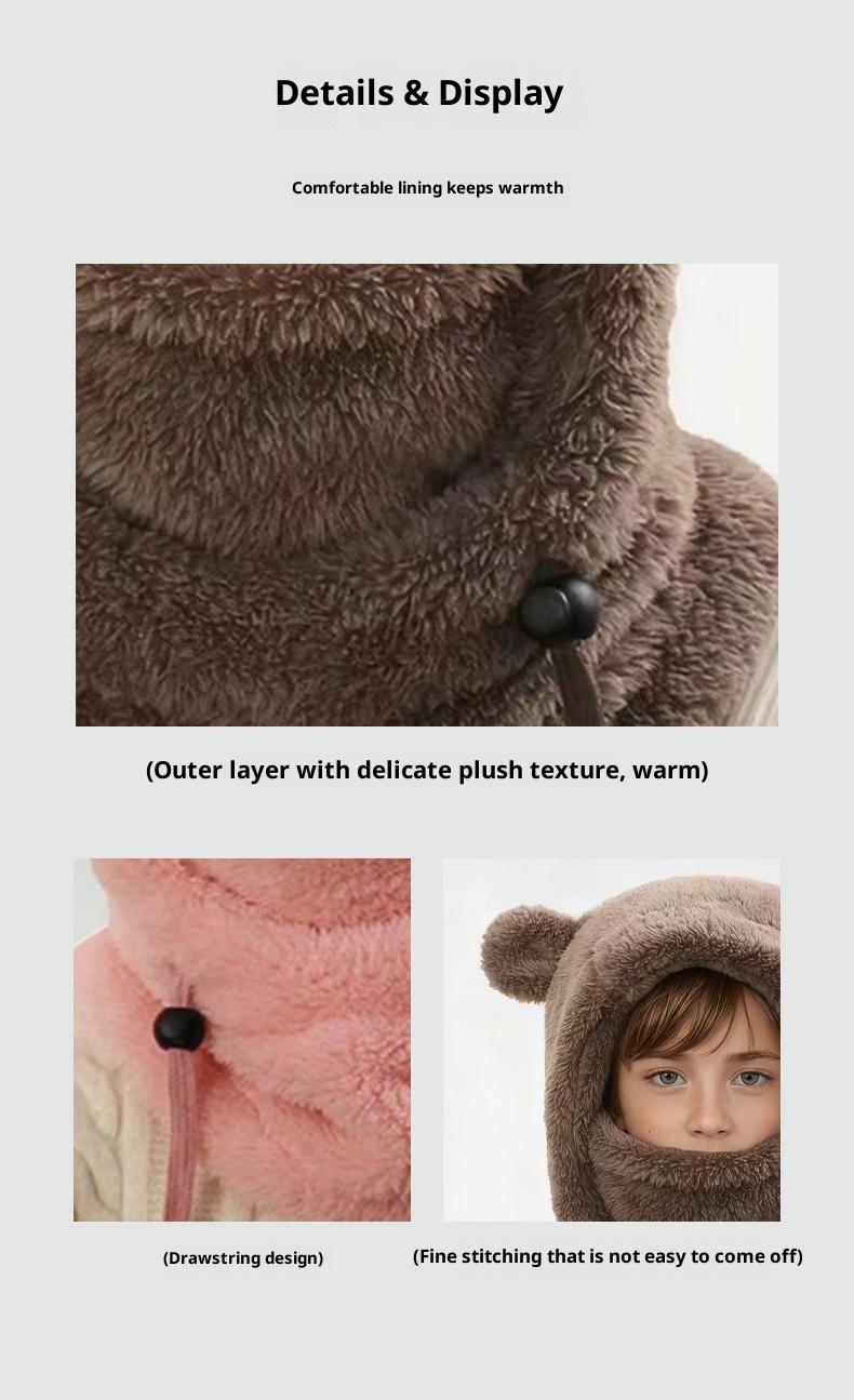Cute Bear Ear Children Outdoor Keep Warm Ear Protection Hoodie Neck Warmer