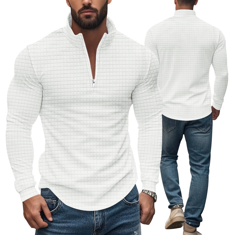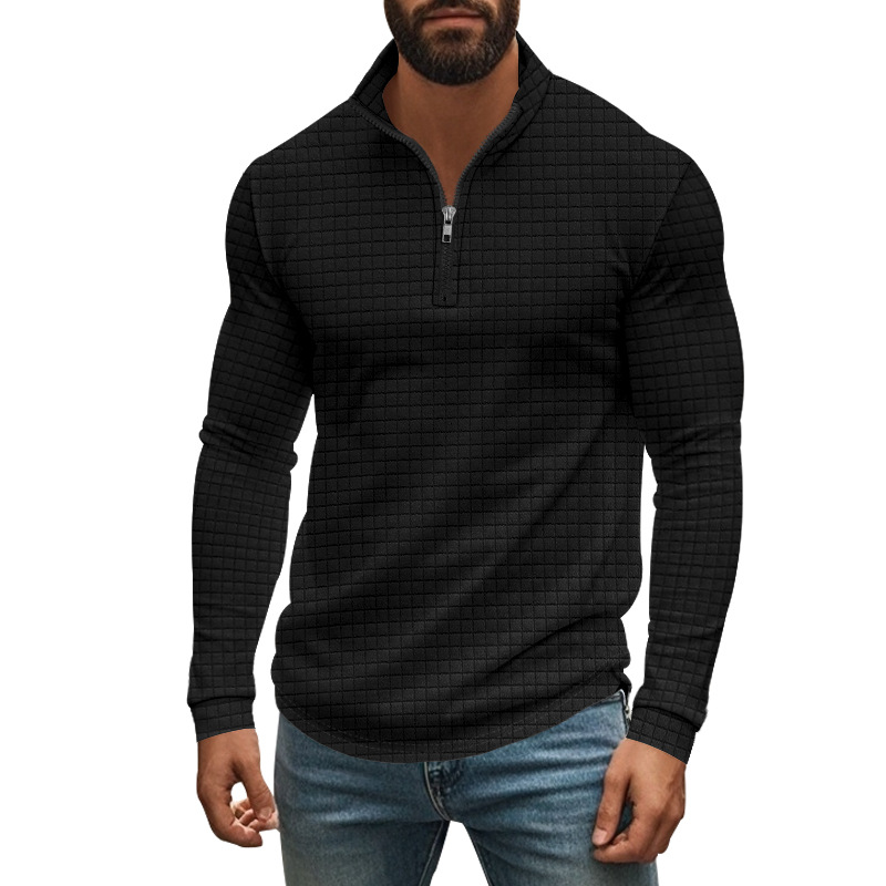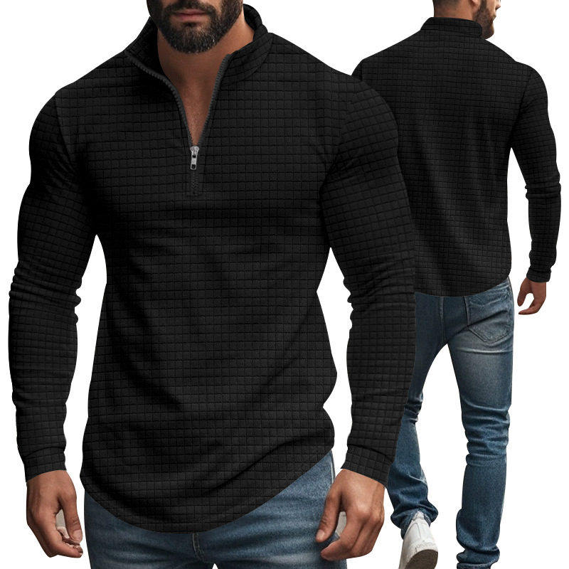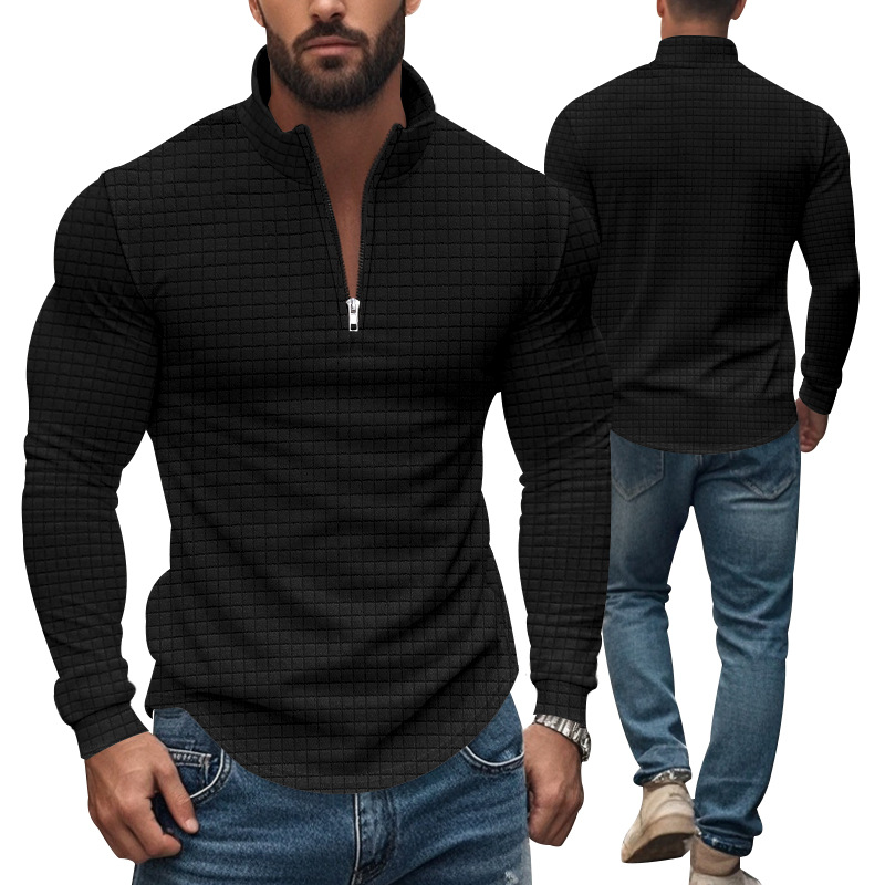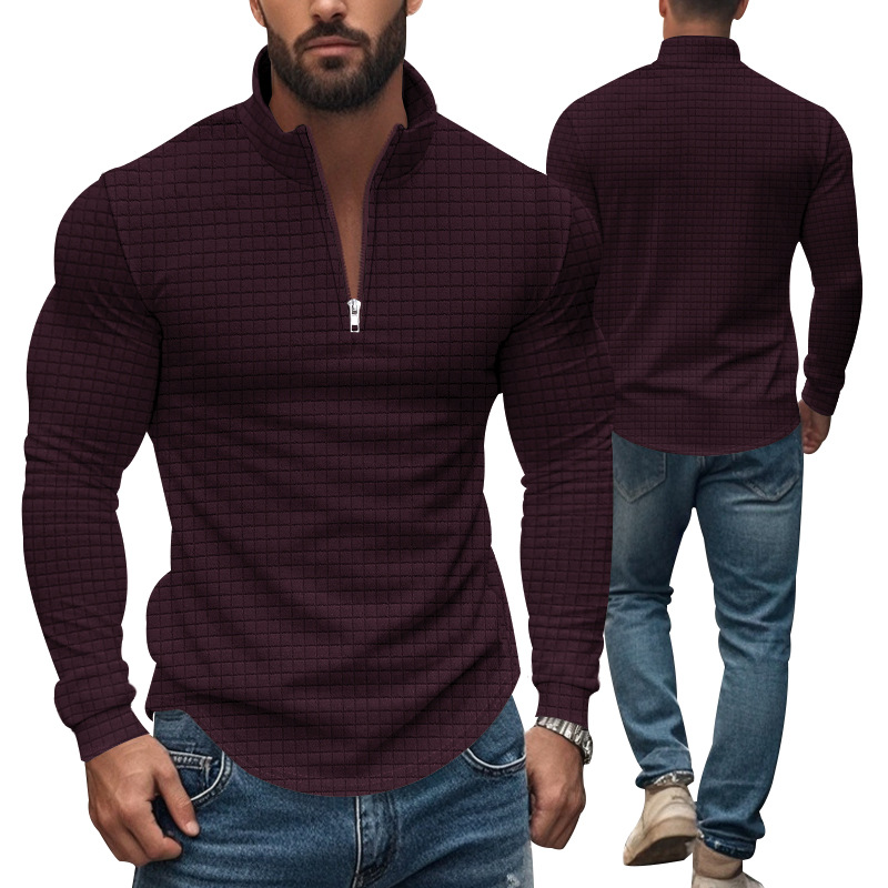 Half Zipper Small Plaid Casual Stand Collar Long Sleeve Sweater