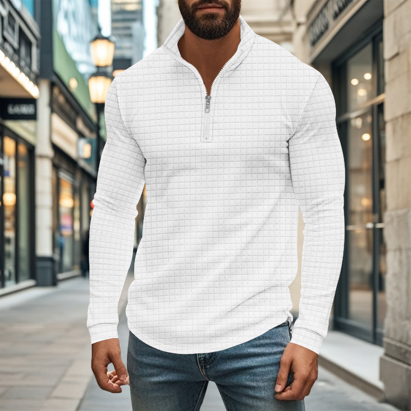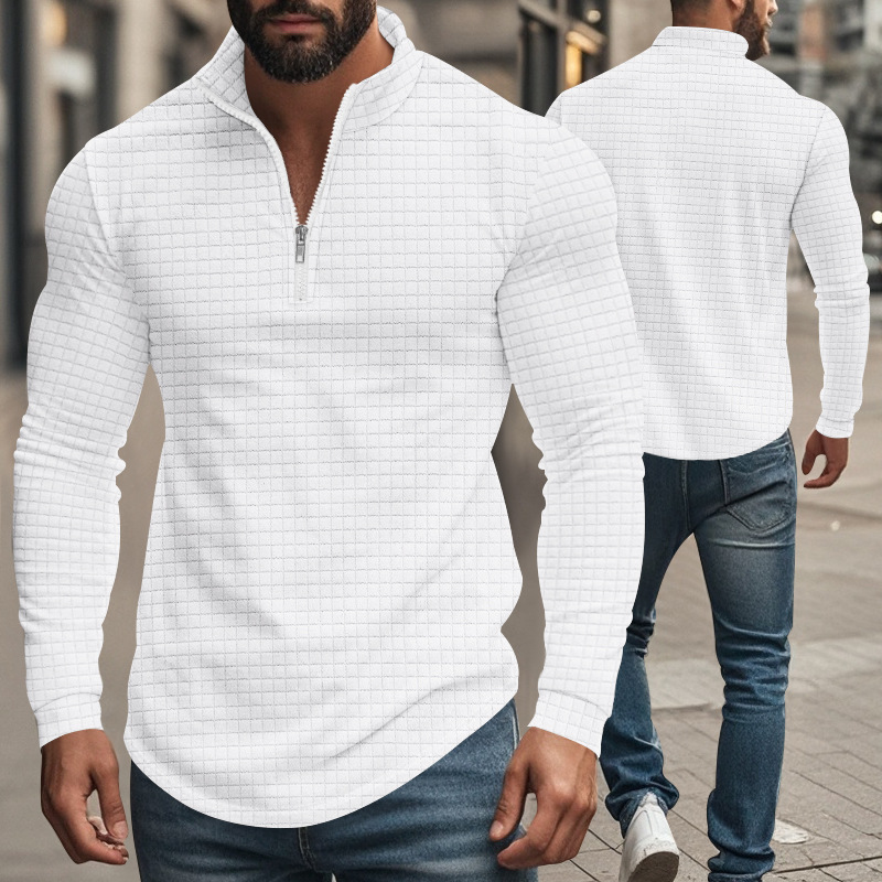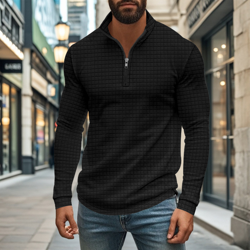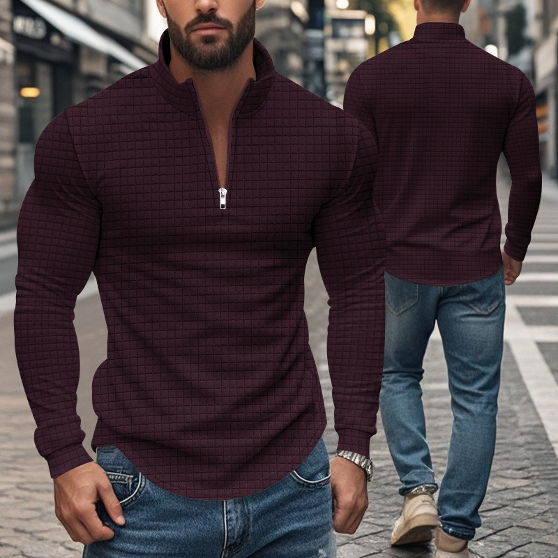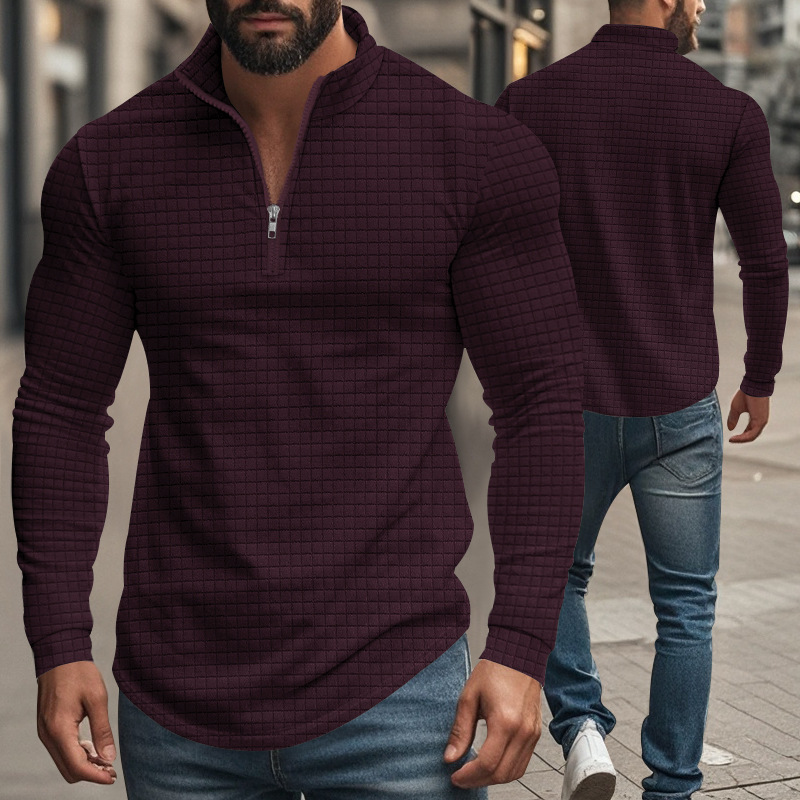 Half Zipper Small Plaid Casual Stand Collar Long Sleeve Sweater