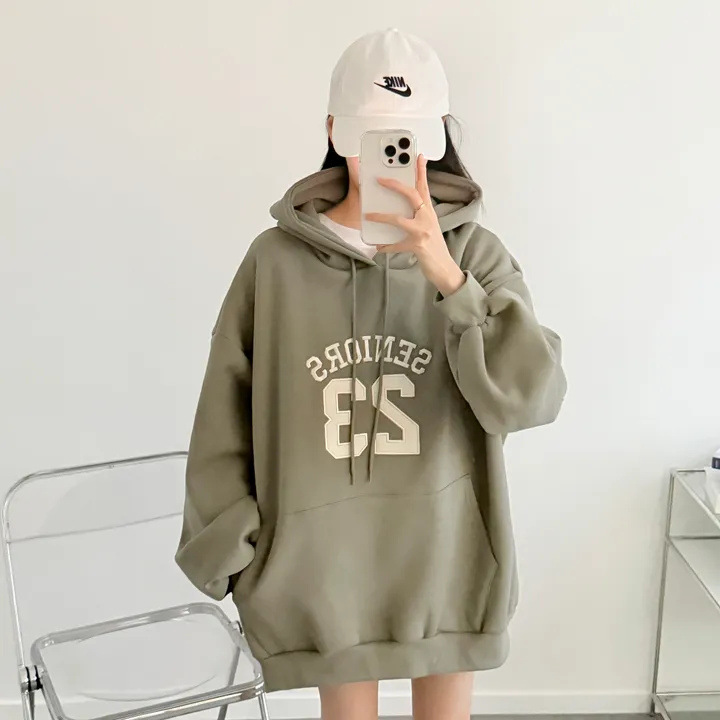 Hooded Embroidery Autumn And Winter Thin Velvet Padded Loose Lazy Style Sweatshirt