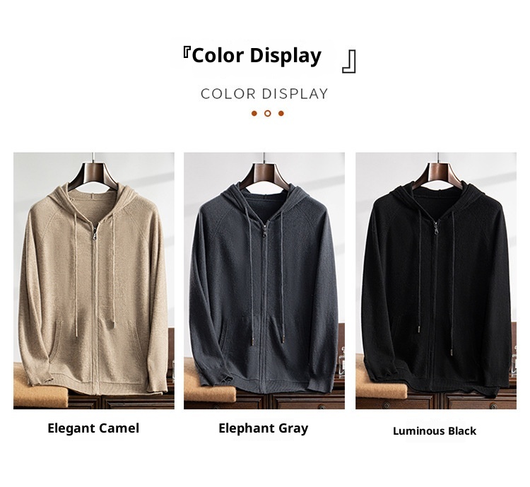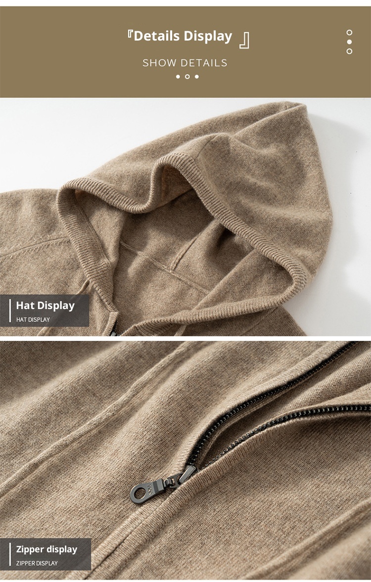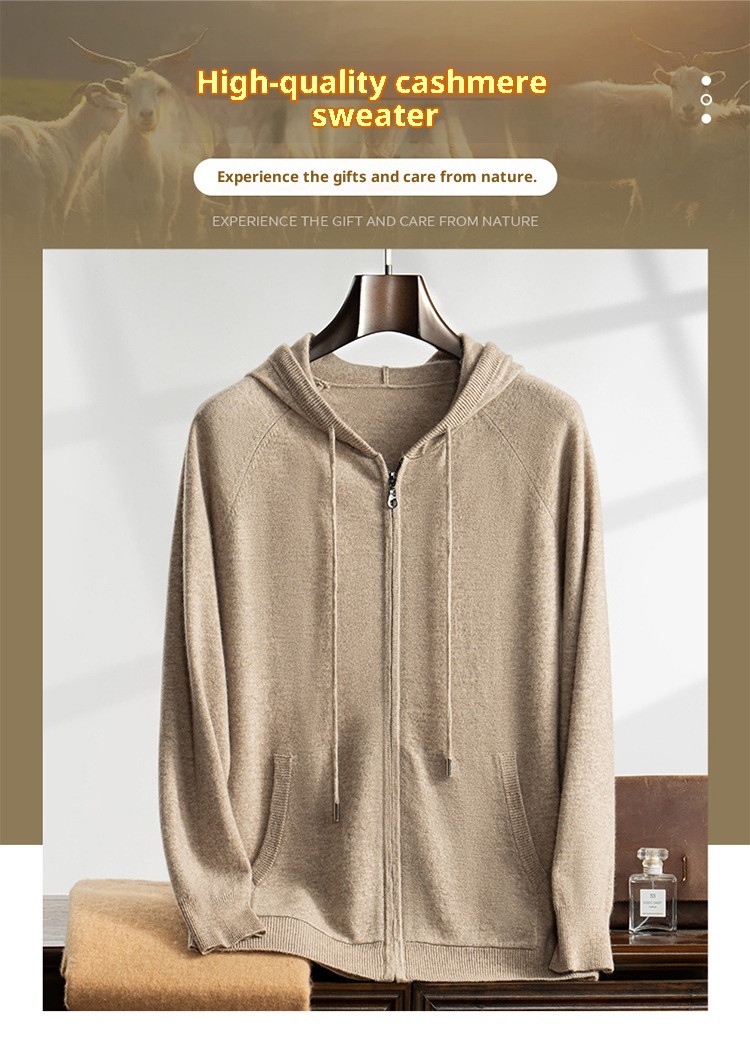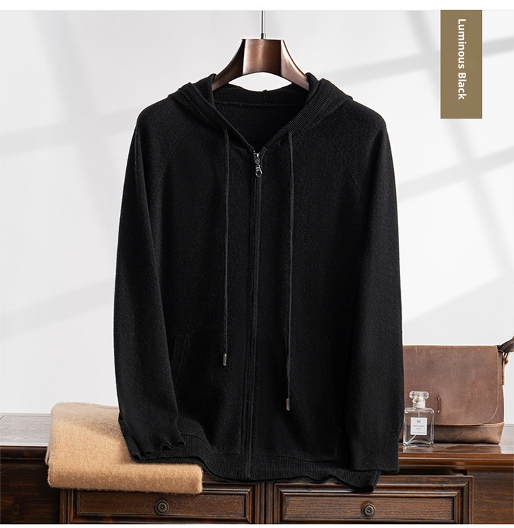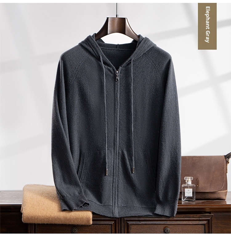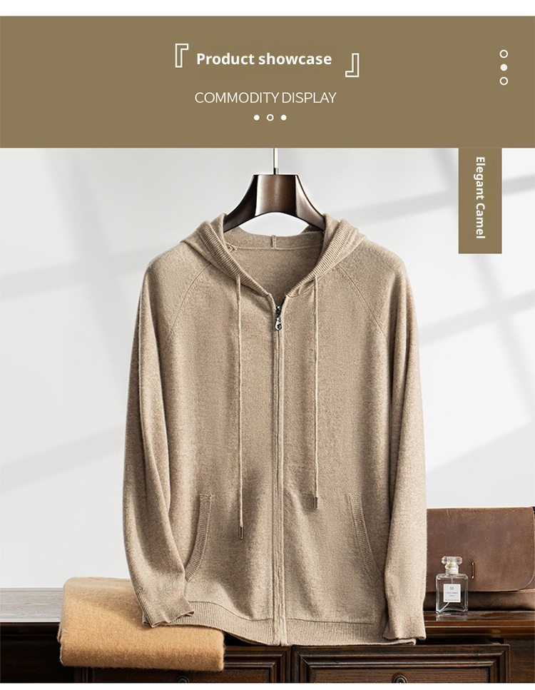 Men's Cashmere Hoodie Zip-Up Knit Cardigan Jacket