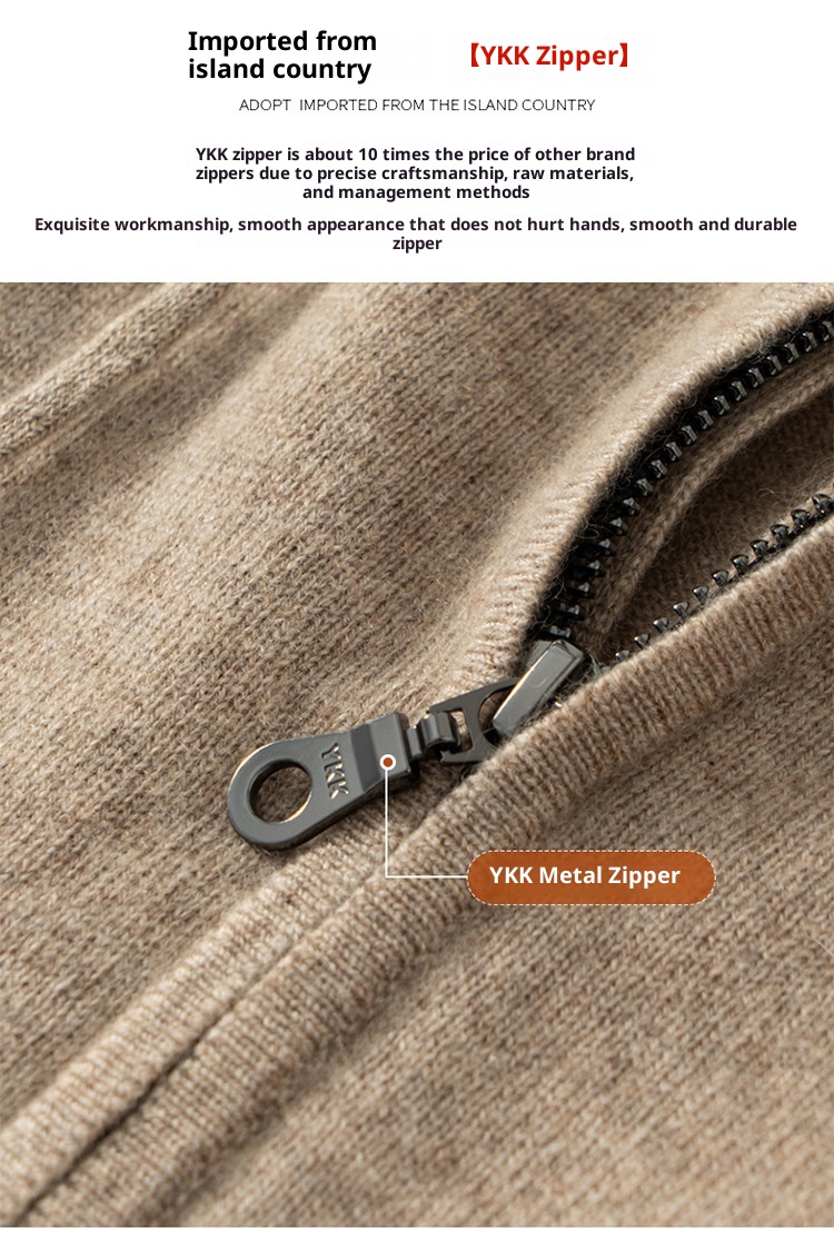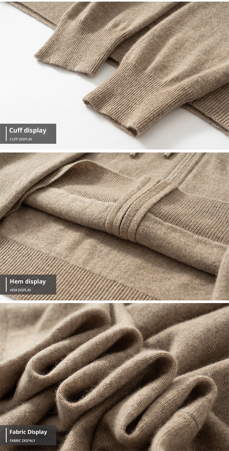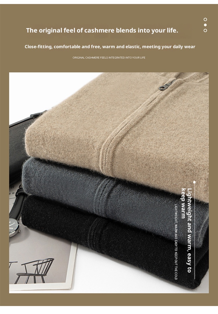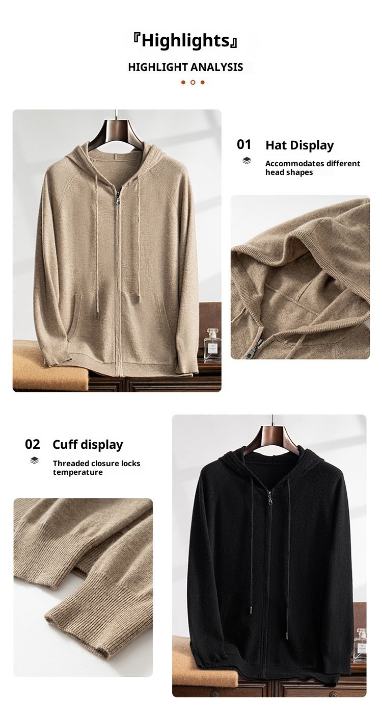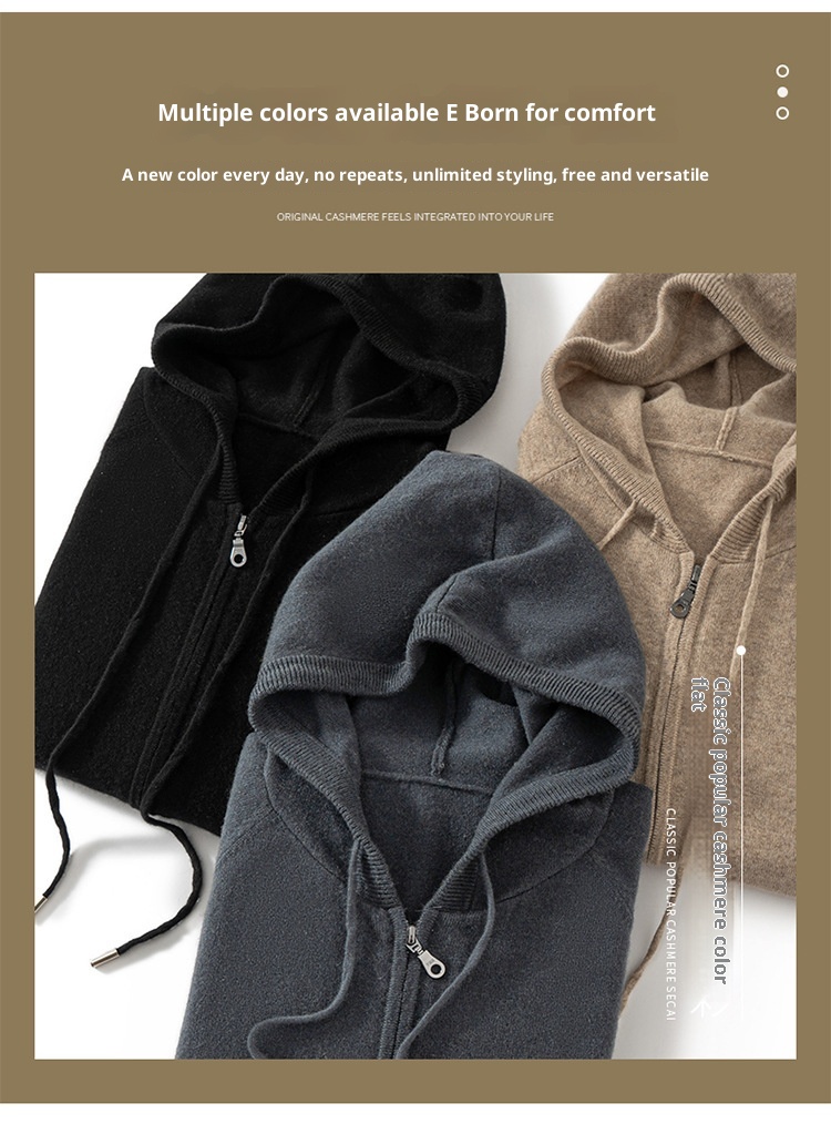 Men's Cashmere Hoodie Zip-Up Knit Cardigan Jacket
