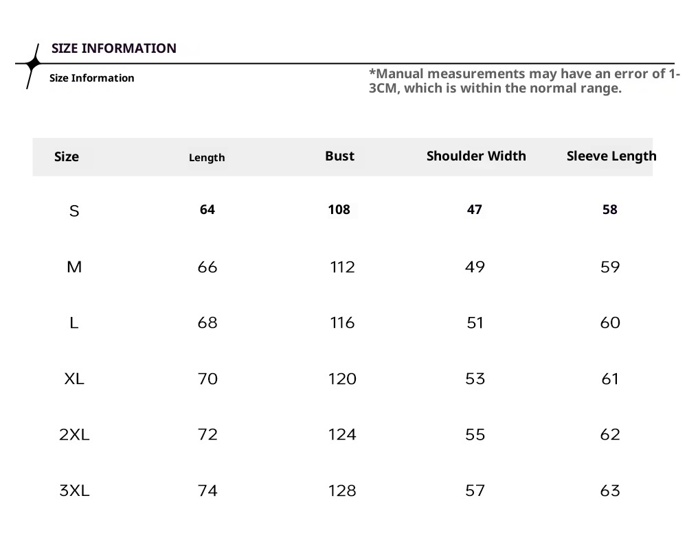 1. Asian sizes are 1 to 2 sizes smaller than European and American people. Choose the larger size if your size between two sizes. Please allow 2-3cm differences due to manual measurement. 2. Please check the size chart carefully before you buy the item, if you don't know how to choose size, please contact our customer service. 3.As you know, the different computers display colors differently, the color of the actual item may vary slightly from the following images.