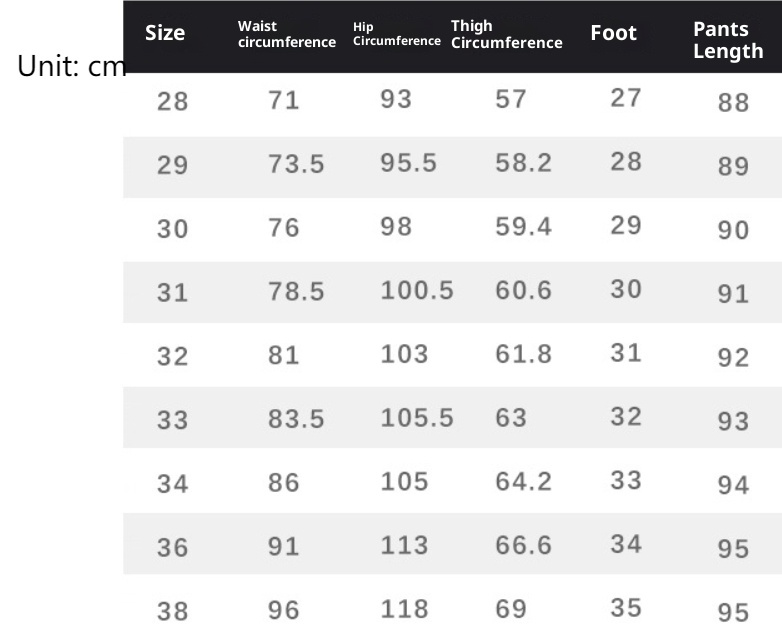 Size: 28, 29, 30, 31, 32, 33, 34, 36, 38