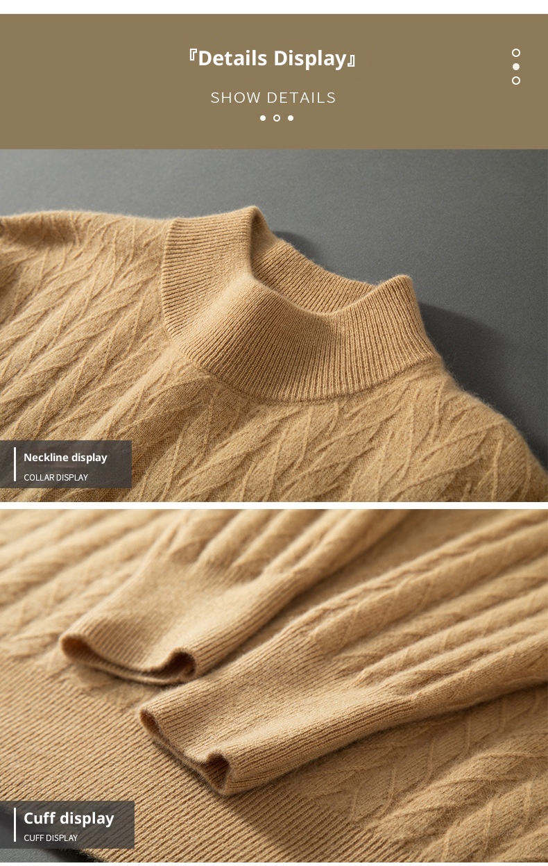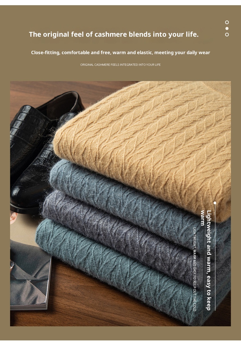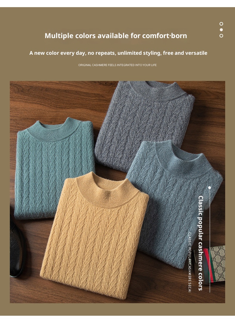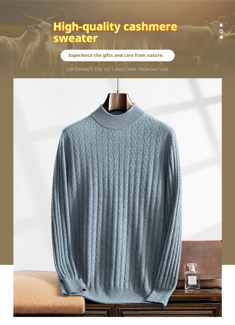 Thickened Wheat Jacquard Cashmere Sweater Men's Half-high Collar Solid Color Sweater